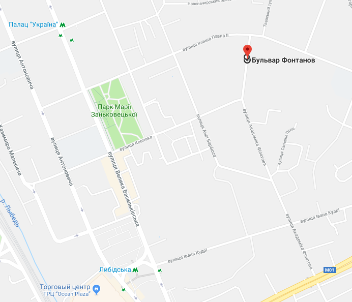 Жилой квартал «Бульвар Фонтанов» находится на пересечении улиц Иоанна Павла II и Саперное поле в Печерском районе столицы. Удобная транспортнрая развязка позволит владельцам личных авто добратся до центра всего за 10 минут и за 30 минут до международного аэропорта Борисполь. Так же будущие владельцы квартир, у которых нет своего автотранспорта, тоже не будут испытывать трудностей, так как квартал находиться всего в 10 минутах ходьбы от метро «Дворец Украина» и 13 минутах от «Лыбедская».